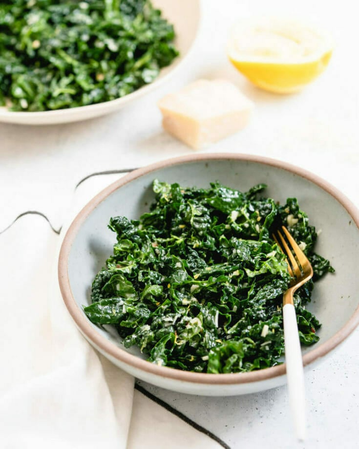 Leafy greens start to appear in fall: and what better way to use them in a fall kale salad? This is one of the BEST kale recipes we know of: we promise! Tuscan kale has the power to transform the minds of kale haters everywhere. After you taste this kale salad you’ll agree that kale smothered in a lemony, garlicky Parmesan dressing can only be one thing: over the top delicious.