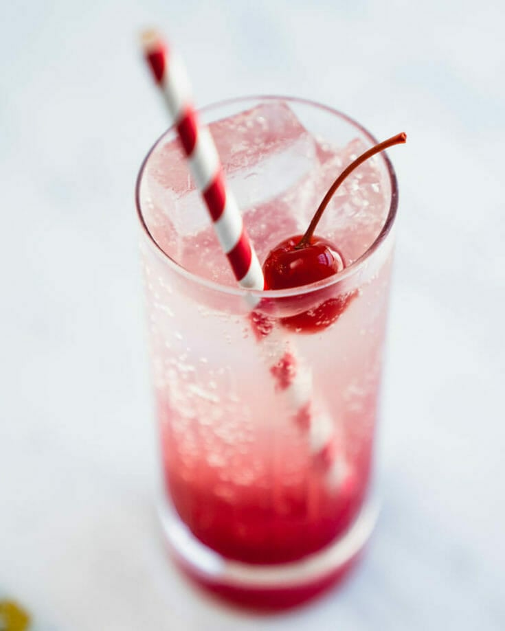 Here’s a bright, beautiful mocktail: the Cherry Lime Rickey! Something about the combination of cherries and lime is pure genius, where the tart of the citrus perfectly accentuates the sweet berry. So combining it into a homemade mocktail or cocktail? Well, it’s pretty darn perfect. Here you’ll take a lime rickey mocktail and add a cherry syrup to bring in that candy-colored flavor. (You can also add gin for the alcohol drinkers!)