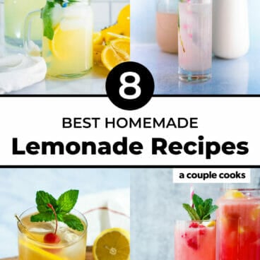 Here’s our best lemonade recipe: quick and easy to whip up a pitcher! Then we’ve got the top lemonade recipe variations: pink lemonade, sparkling, raspberry, and more. (Oh, and some spiked variations…because we couldn’t resist!)