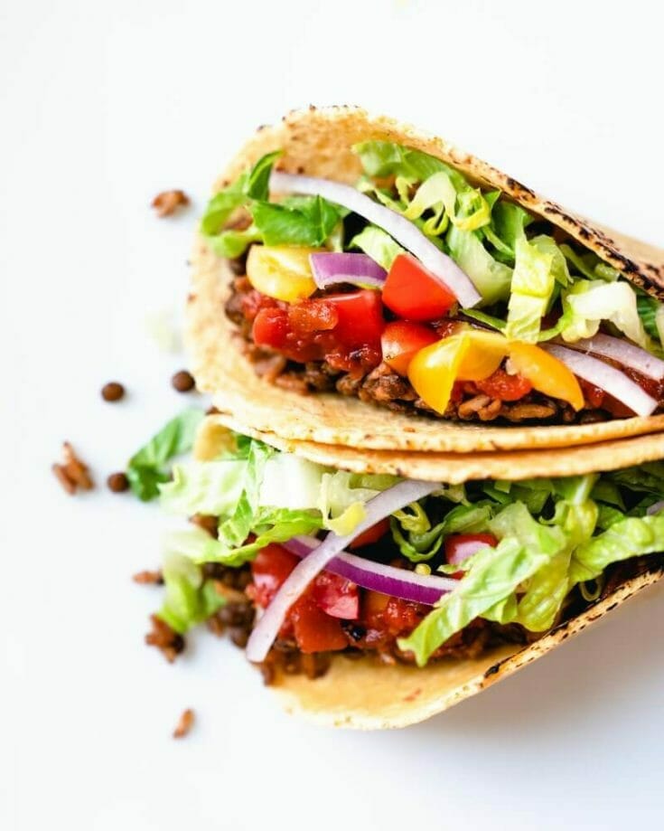 These vegetarian Instant Pot tacos are a total crowd pleaser! They’re fresh and tasty, filled with an irresistible filling of Smoky Instant Pot Lentils and Rice. Topped with all the crunchy veggies. It’s an easy healthy dinner recipe that pleases everyone. Set out the taco toppings and let everyone choose their own! Our favorite toppings? Creamy Cilantro Sauce and Best Salsa