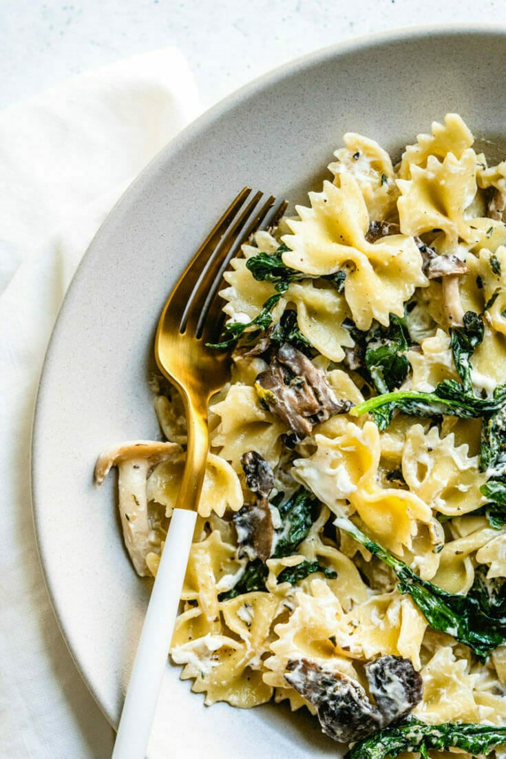 Next up in our easy dinner recipes: this mushroom pasta! It's a fan favorite recipe because of the big flavor that's possible in under 30 minutes. Imagine: creamy goat cheese and savory mushrooms, seasoned with thyme and oregano and paired with the bite of chewy pasta. An absolute showstopper.
