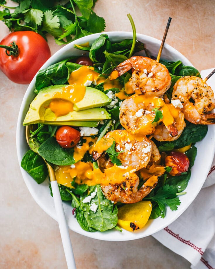 Here’s an irresistible shrimp recipe you’ll want to make again and again…this Shrimp Rice Bowl! It got 5 stars in our house. Mix up a batch of cilantro lime rice, then top it with tender shrimp and a black bean and corn salad. This best part is a creamy, zingy chipotle ranch dressing that covers it all in deliciousness.