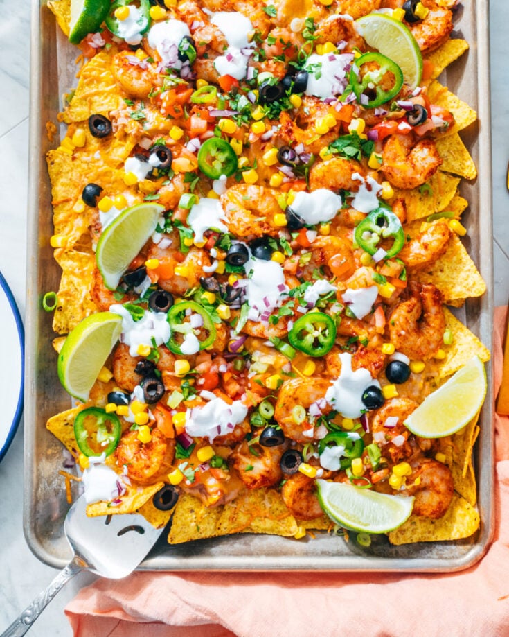 Here's a fun recipe starring this succulent seafood: Shrimp Nachos! It makes the best fun appetizer or simple dinner atop crunchy tortilla chips with a confetti of colorful toppings. You don't even need to cook the shrimp separately: throw them on top of the chips and bake!