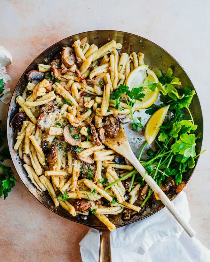You won’t want to stop eating this mushroom pasta recipe! Its savory, buttery flavor pops with garlic, lemon, and Parmesan. This dish has just the right proportion of ‘shrooms to pasta, so that each bite has a generous pop of flavor.