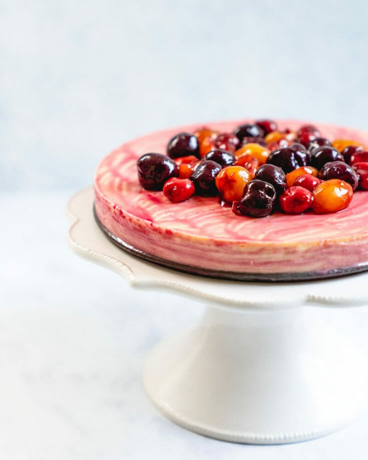 This cherry cheesecake tastes decadent but has a healthy spin: it's crustless! Yes, there's no crust here, making it that much healthier and easier to make. It's ultra creamy, made with Greek yogurt and baked slowly to perfection. It’s got a healthy spin but tastes decadent!
