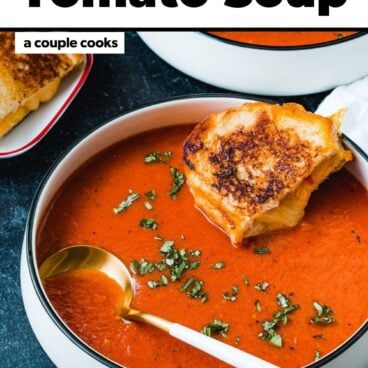 This was delicious tomato soup! I’ll never go back to canned tomato soup again. I served it with plain ol’ grilled cheese sandwiches. Next time I’ll try it with your gourmet grilled cheese!