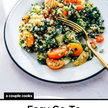 - Kale Quinoa Salad: This Kale Quinoa Salad is perfect for lunches, starring Tuscan kale and hearty chickpeas.