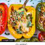 This stuffed peppers recipe is a hit every time! The roasted bell peppers are filled to the brim with melty cheese and Italian flavor.