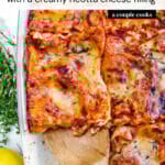 This vegetarian lasagna recipe is a total crowd pleaser! The easy spinach and ricotta cheese filling is classic and creamy.