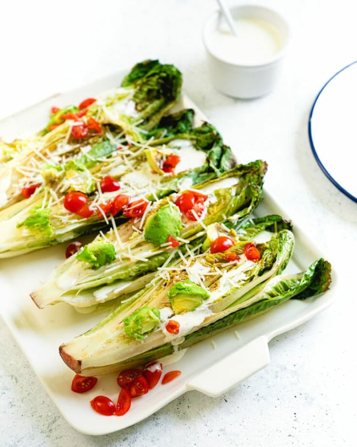 Are you ready for the best grilled side dish to hit your plate? Grilled Caesar salad. Wait, grilled lettuce? Yes, grilled romaine has a smoky undertone that makes it is irresistible. Top it with this delicious homemade Caesar dressing.