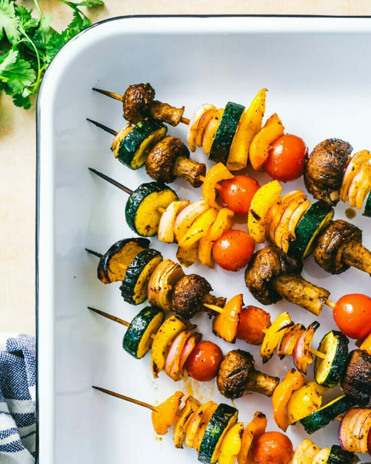 These grilled veggie kabobs skewer all the best vegetables and are easy to throw on the grill! They’re an ideal healthy side dish.