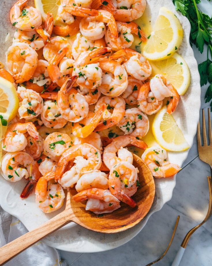 Next up in our fast and easy dinner recipes: garlic shrimp! The shrimp come out impossibly juicy with the best garlic flavor. The best part? It takes under 10 minutes to make. Yep, that’s pretty unheard of in dinnertime territory. Serve with pasta or couscous and a salad for a speedy meal. Also try Cilantro Lime Shrimp.