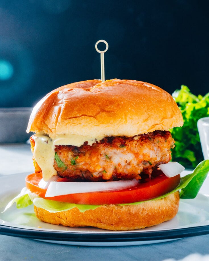 You can make just about anything into a burger, from chicken to seafood to vegetables. So why not try a shrimp burger? Turns out, these succulent shellfish make a surprisingly juicy and satisfying patty. Slathered with a creamy sauce and served up on a bun, it’s a hearty meal that we like even better than its cousin the salmon burger.