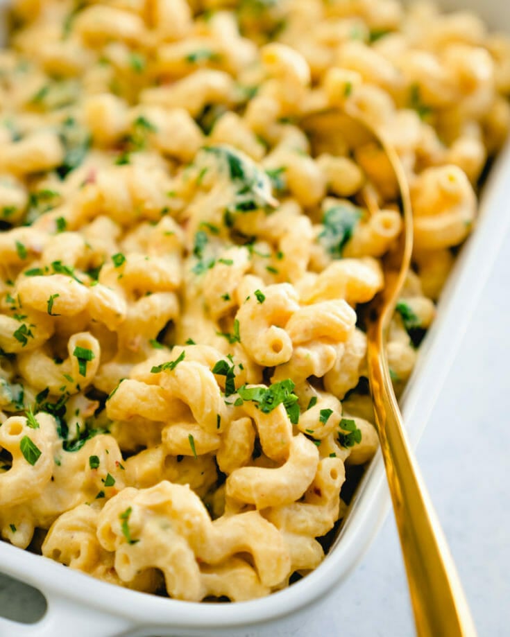 Here’s a tasty pasta recipe that’s comfort food with a healthy spin: our creamy cavatappi pasta! It’s one of Alex and my favorite pasta shapes, paired with a creamy cauliflower sauce that coats the noodles perfectly. It’s cheesy but not too rich, made with a secret ingredient to infuse nutrients.