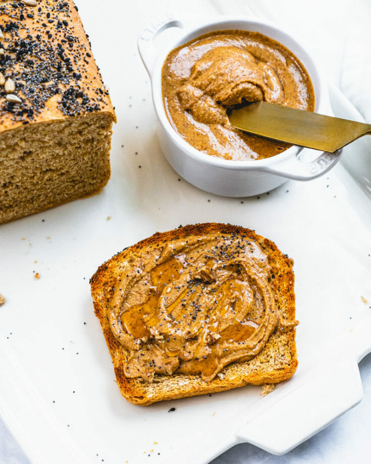 Want a go-to easy homemade bread recipe? This recipe works for just about anything. It’s perfect for sandwiches, making toast, or serving with soup. Even better, it really is easy compared to other breads you’ll bake. You don’t need specialized equipment, and it bakes right in a 9-inch loaf pan. It’s got a little whole wheat flour, oats, and seeds on the top for added nutrients and flavor. You’ll never need to buy bread again!