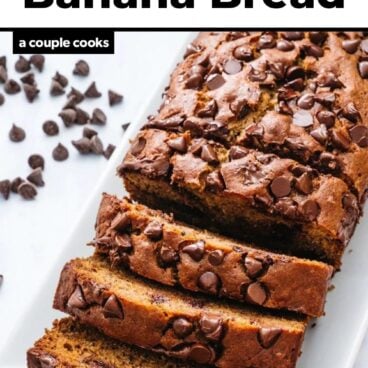 Try this chocolate chip banana bread recipe: the best way to use the ripe fruit! It’s moist and sweet, flavored with brown butter.