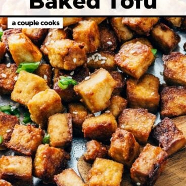 Baked tofu has eluded us for years: no matter what recipe we tried, we couldn’t seem to find one we loved…until this one came along. Try this crispy Baked Tofu! You won’t be able to resist sneaking bites off the pan with this one. It’s irresistibly savory and seasoned to perfection, with a satisfying crunch to each bite. Even better, there’s no 30 minute wait while you press the tofu (our pet peeve in tofu recipes). Come, experience the magic of actually easy, actually crispy tofu.