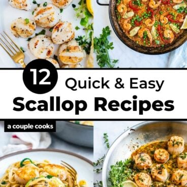 Looking for an easy and elegant way to dinner? Think scallops! This tender, buttery mollusk has a sweet, mild flavor that pleases just about anyone. They’re perfect for impressing guests at a dinner party, or for a romantic dinner for two. Scallops can be a little tricky to perfect, so you’ve got to have a great recipe. So here are our top scallop recipes! Along with recipes from this website, we’ve included selections from expert recipe writers Lindsay Ostrom of Pinch of Yum, Holly Nilsson of Spend with Pennies, and Jessica Merchant of How Sweet Eats.