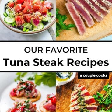 These tuna steak recipes are the best ways to serve this meaty, buttery fish! Try ahi tuna seared, grilled, in tacos and more. For all the recipes, see the list above!